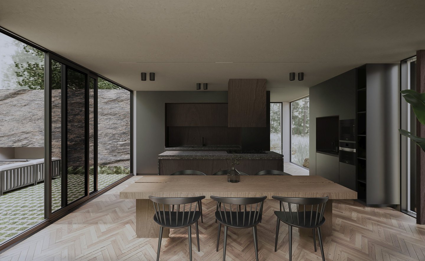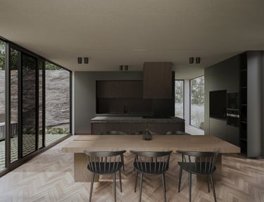 Este proyecto de visualización arquitectónica plantea una cocina contemporánea integrada en un entorno residencial moderno. La escena se apoya en una interpretación del estilo escandinavo, destacando líneas limpias y una paleta neutra cuidadosamente equilibrada para transmitir calidez y armonía visual.